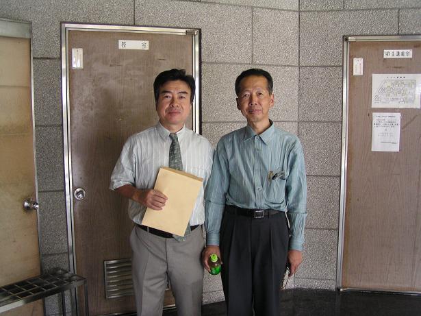 山崎先生は親友の寺澤先生と現代の東洞(松島先生)にはさまれて、はいチーズ!